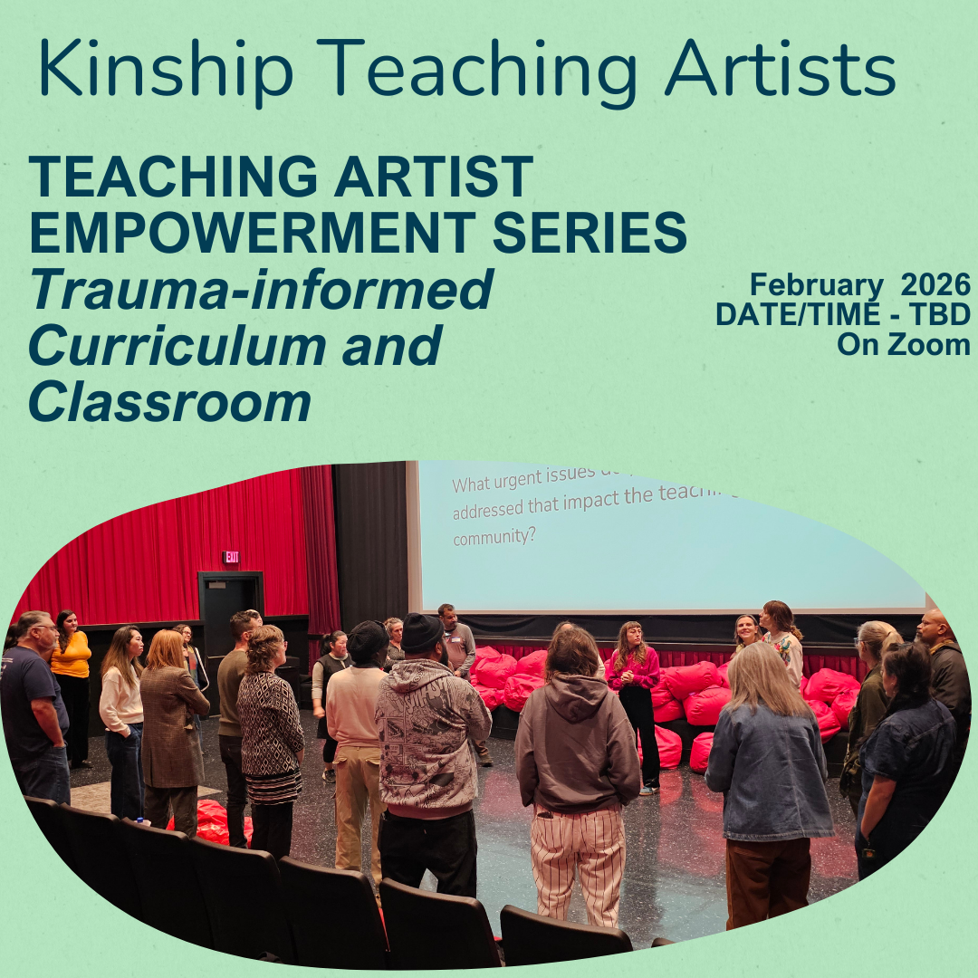 Recognizing that we all bring different strengths and experiences to the group, Kinship TA empowerment series are structured panels and discussions designed by teaching artists for teaching artists. These sessions address important issues impacting the field and community at large We disseminate information, share insights and resources with the intention of strengthening our community and eliminating obstacles.